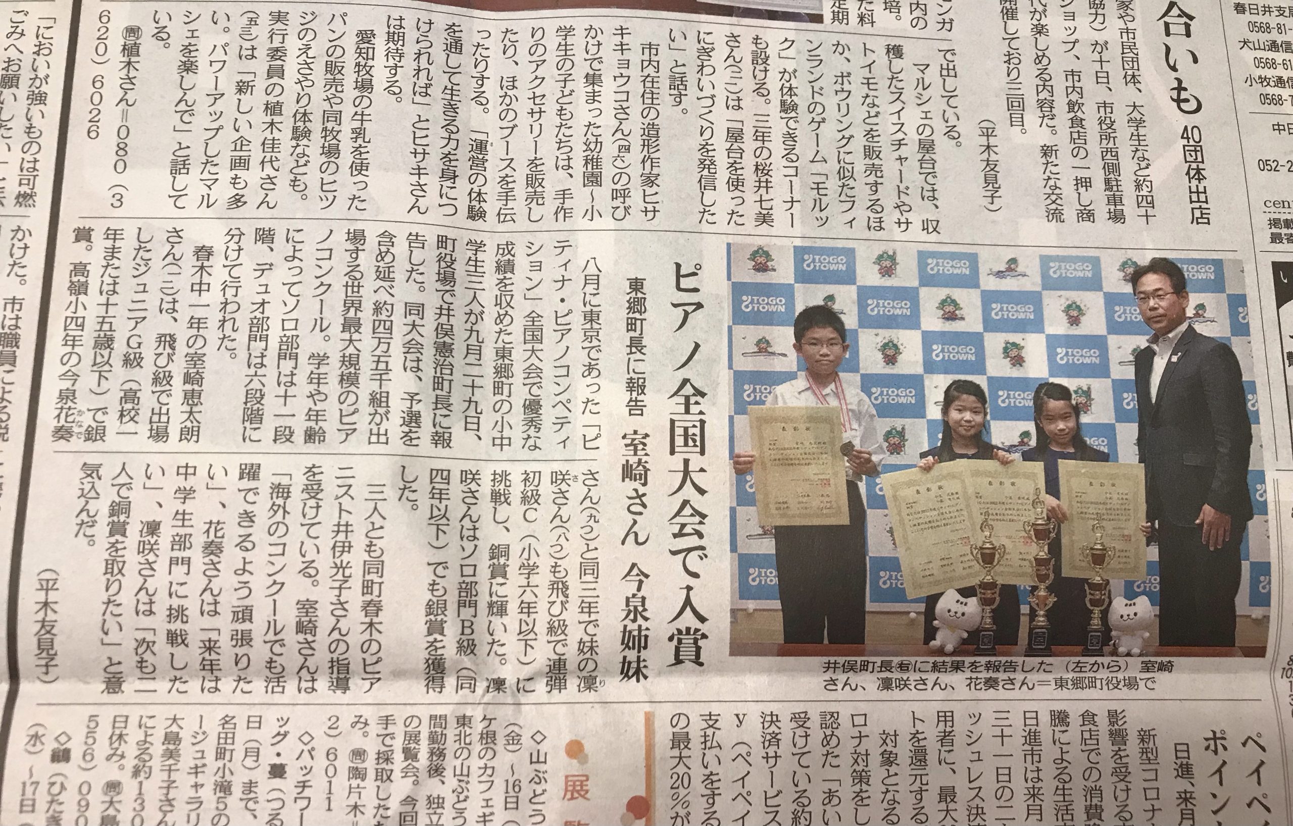 そして、毎日新聞主催の学生音楽コンクール名古屋本選もありました❗️ 中1の室崎恵太朗君、見事に全国大会行きを決めてくれました。彼は、数日前に開かれた大阪国際音楽コンクールでも2位を受賞しました。1位、3位は韓国などでしたので、日本勢としてはかなり健闘しました😄(しかも学生コンクールとは違う曲)