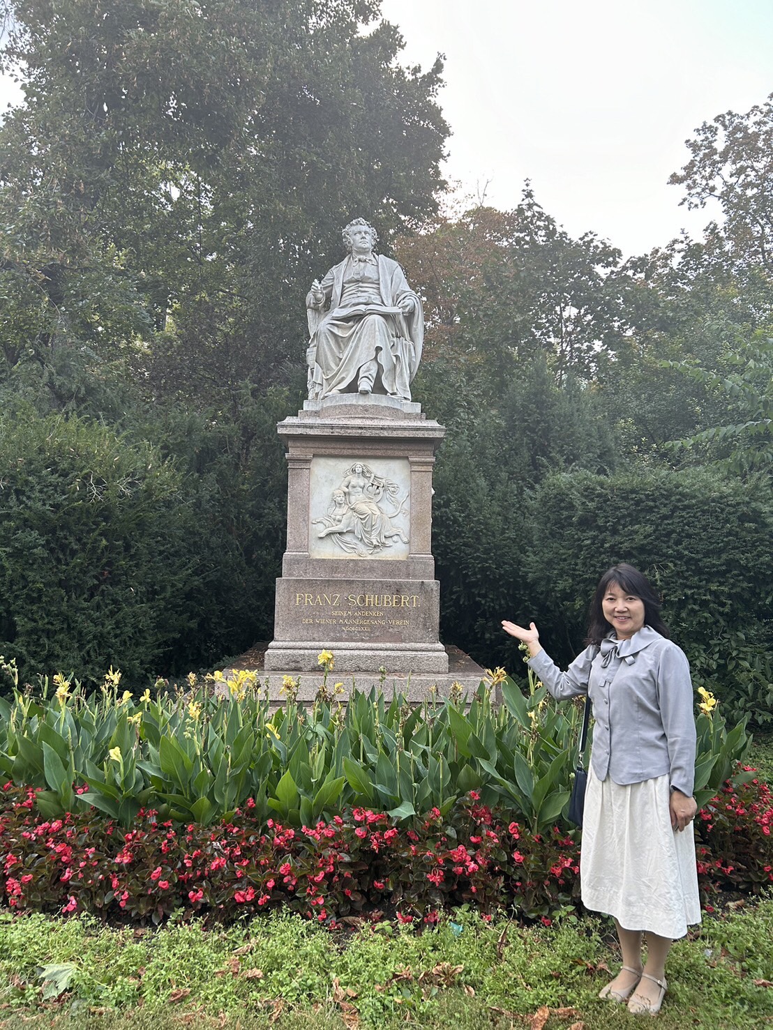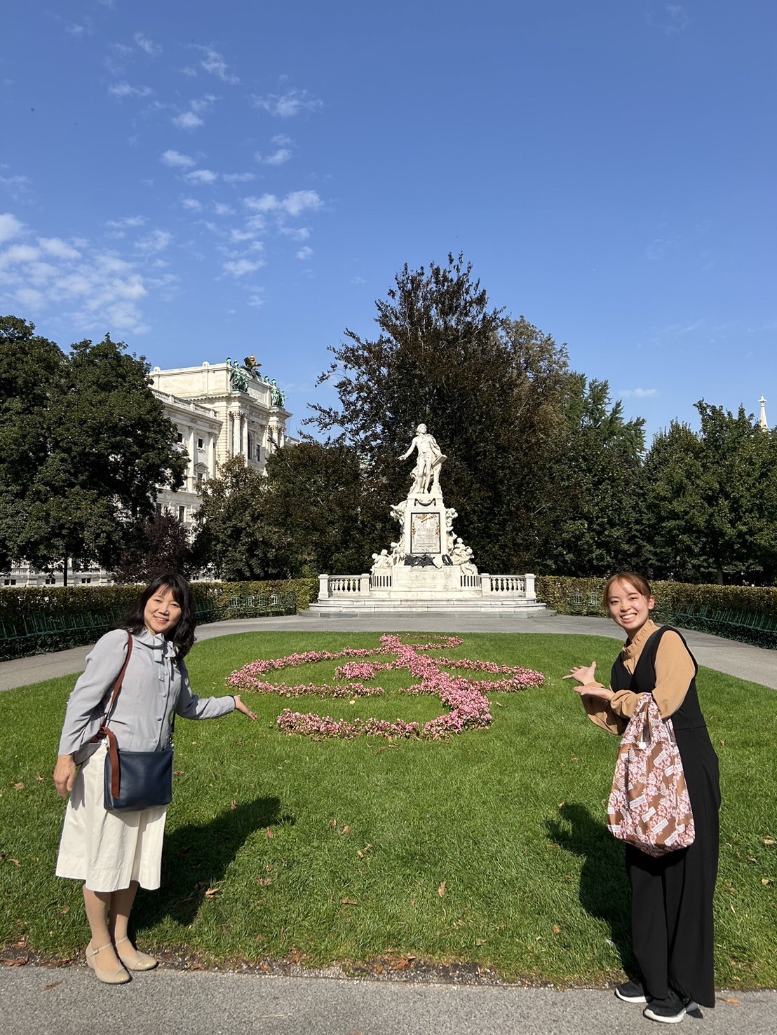 2024年9月21日 ウィーン観光 その2 ウィーンに来たら、いくつかある作曲家の像を見ないといけませんね😅 まずは、王宮庭園にあるモーツァルト像です。ト音記号の花壇が素敵💓 初ウィーンの大谷恵ちゃんと記念撮影です✨ 市立公園内のヨハン・シュトラウス像🎻 市立公園のシュトラウス像を越えてトラム1駅分を歩くと、シューベルト像があります。 コンツェルトハウスの前の通りを越えた向かい辺りには、ベートーヴェン像があります。 こちらがコンツェルトハウスです。そういえば、今回、有名なオペラ座や楽友協会の外観の写真は撮っていないかもしれません😅