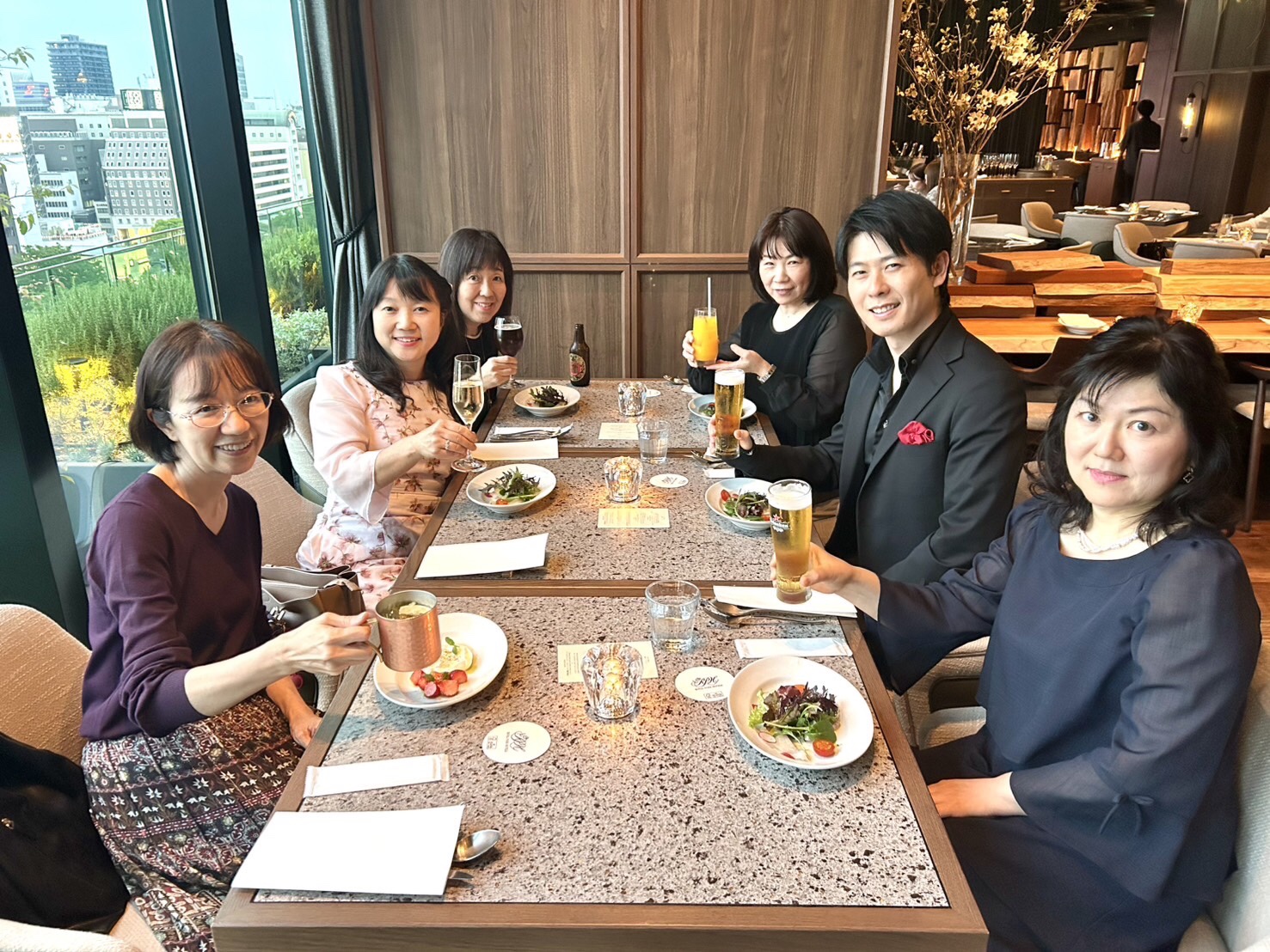 コンサート後は、打ち上げ兼誕生会🥂 中日ビルの上にできたロイヤルパークアイコニックホテルでお食事しました!ピアニストの福間洸太朗さん、遠くから来てくれた久保山千可子先生、広澤純子ちゃん、小田麻紀子ちゃん同門の仲間達ありがとうございました💖