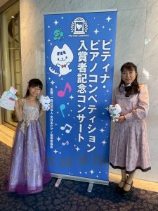 さて、次は3月連休にありましたPTNA金賞受賞者による第一生命ホール(東京)での入賞者コンサートです。こちらはB級で金賞だった杉田彩寧ちゃんが演奏しました。仲良しの角野美智子先生と一緒に記念撮影。