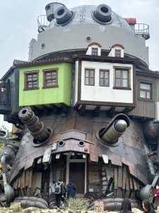 ジブリの大倉庫内にあるトトロのカフェ(ここでは食べれません)。ラピュタの最後に出てくる動かなくなる大きな兵士?などなど盛りだくさんです。
