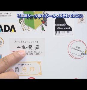 2月上旬だったか、名古屋テレビの番組制作会社から 3月放送予定のロバート秋山の番組内で “巷で流行っているシール交換を行う” 企画を練っていると相談がきました。普通のシール交換ではなく、会社やお教室などのシールで交換を行うというもので、教室に余っていた記念シールなどをいくつかお送りしました。